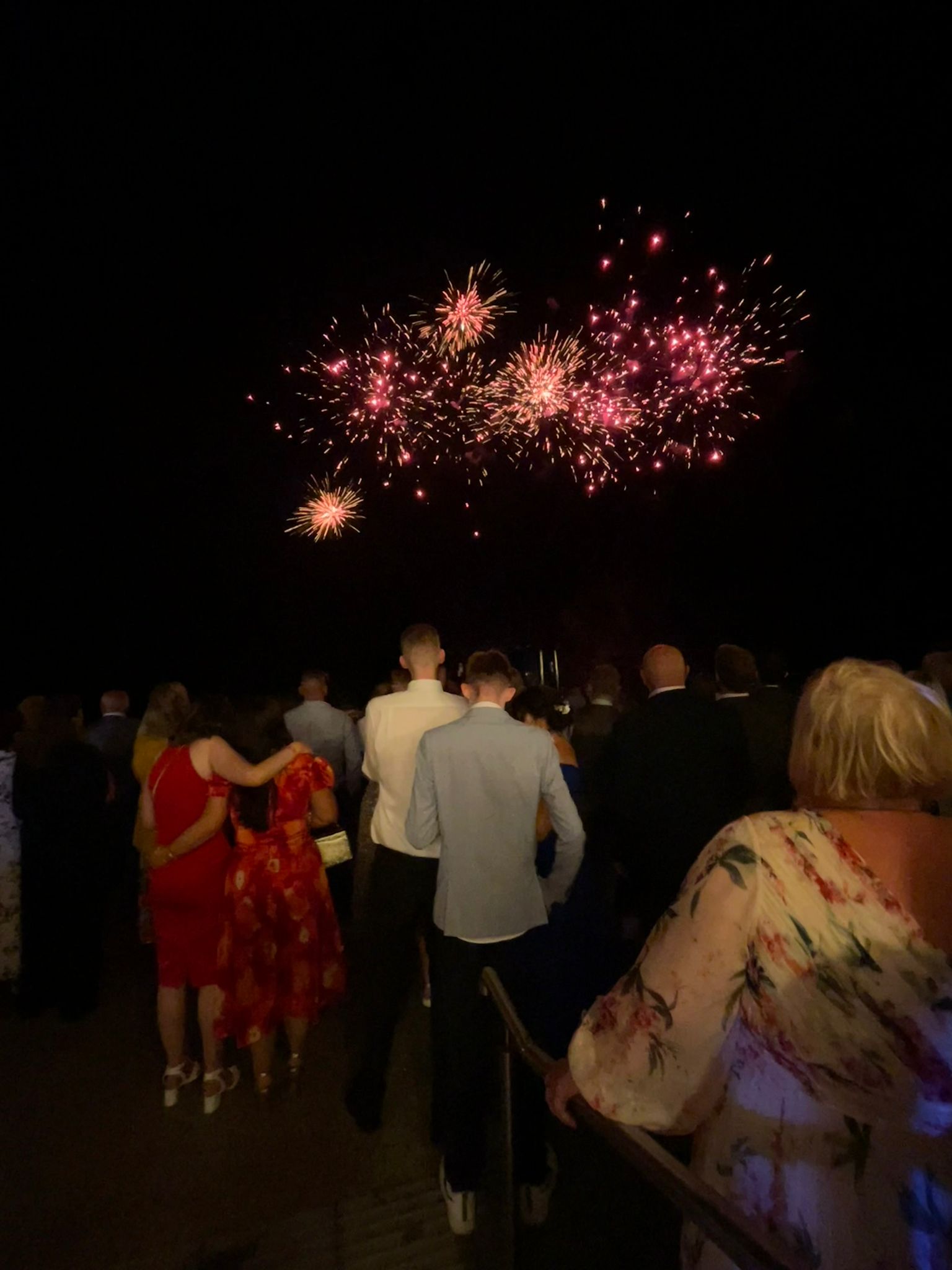 The show continued with a mixture of elegant aerial effects and colourful bursts that filled the sky with vibrant reds and shimmering golds. The setting worked beautifully for fireworks, with guests enjoying clear views as each sequence unfolded above them.