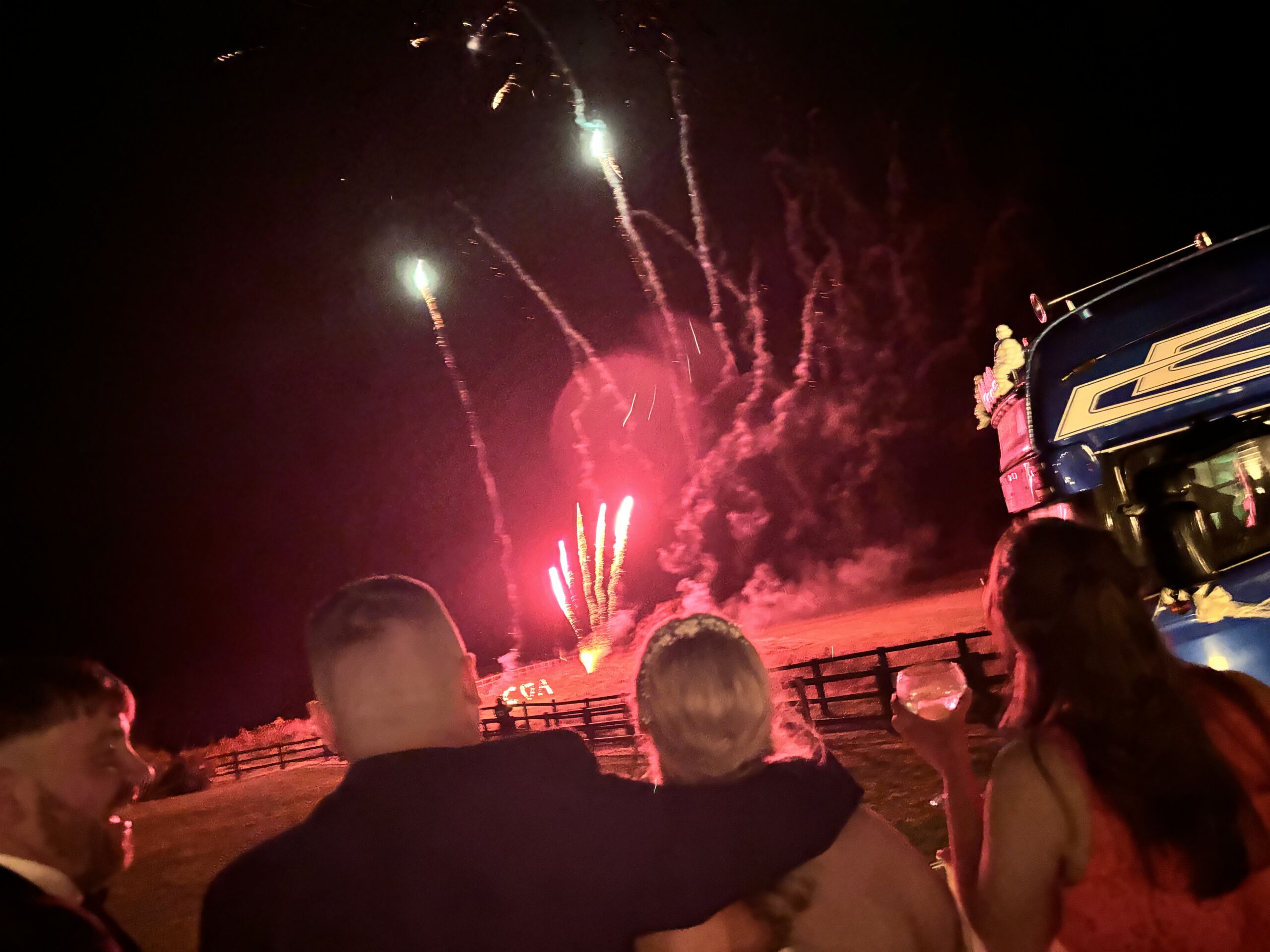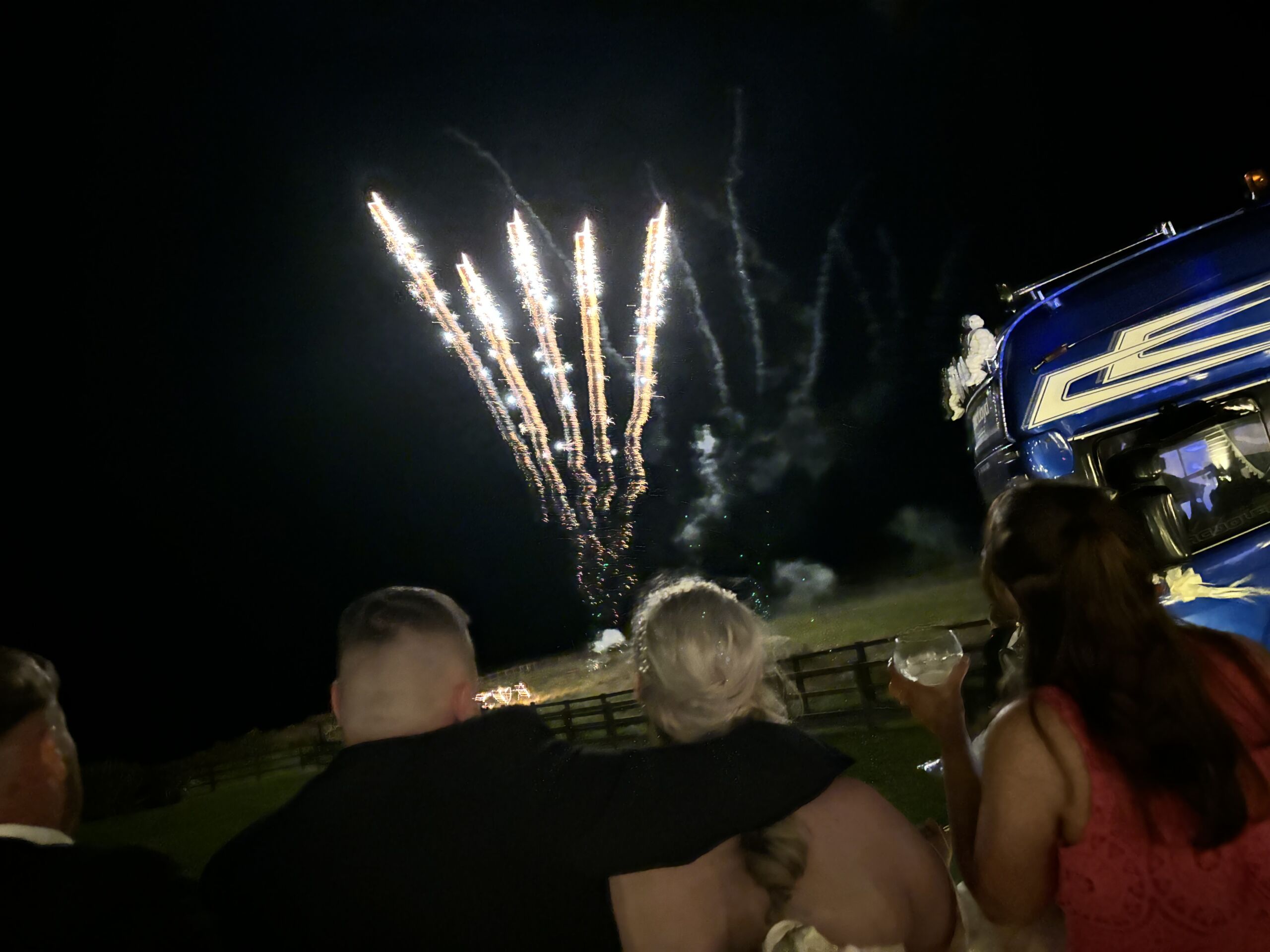 The display built towards a bright finale of sparkling silver effects that filled the sky and brought the show to a spectacular close, leaving guests applauding and the couple with a moment they will always remember from their special day.