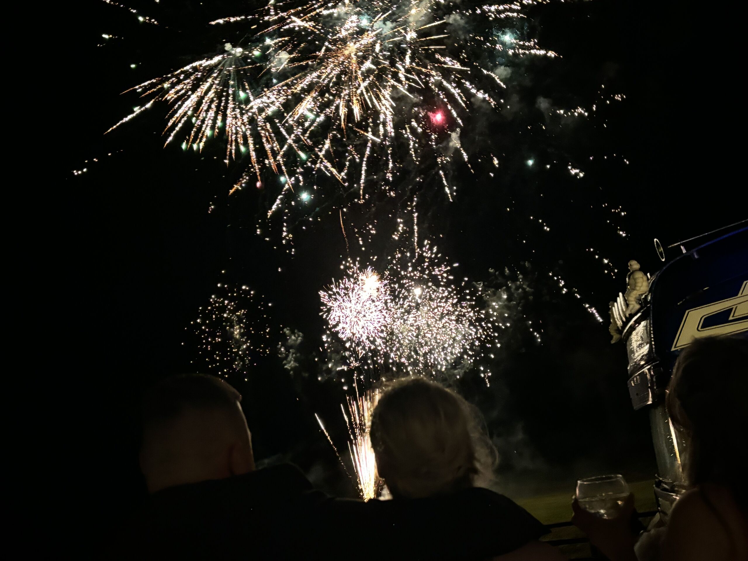 As guests made their way outside and gathered on the terrace overlooking the grounds, anticipation began to build. The first fireworks rose into the night sky, breaking into bright bursts of gold and silver that illuminated the surroundings and set the tone for the display.