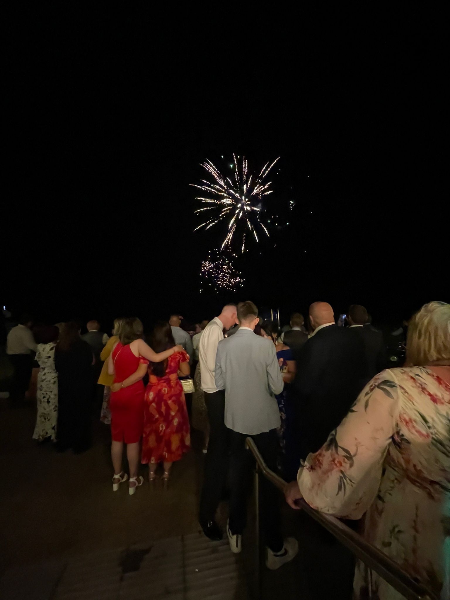 Moments like these are often some of the most memorable parts of a wedding evening. Couples and guests stood together watching the display, creating a shared experience that added excitement and atmosphere to the celebrations.